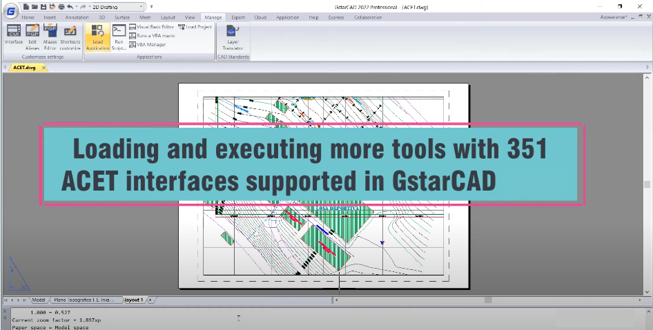 มาพร้อมกับอินเตอร์เฟสที่สมบูรณ์แบบสำหรับการเรียกใช้งานเครื่องมือพิเศษ หรือ ACET (AutoCAD Express Tools) กว่า 351 ตัว ทำให้เรียกใช้งานเครื่องมือที่มีประโยชน์สำหรับ งานเขียนแบบได้มากขึ้น โดยไม่มีปัญหาในการ เรียกใช้งาน