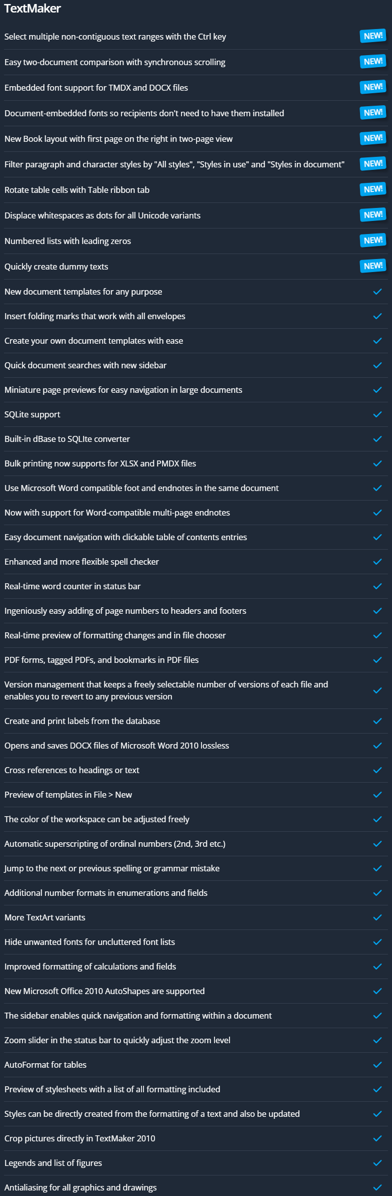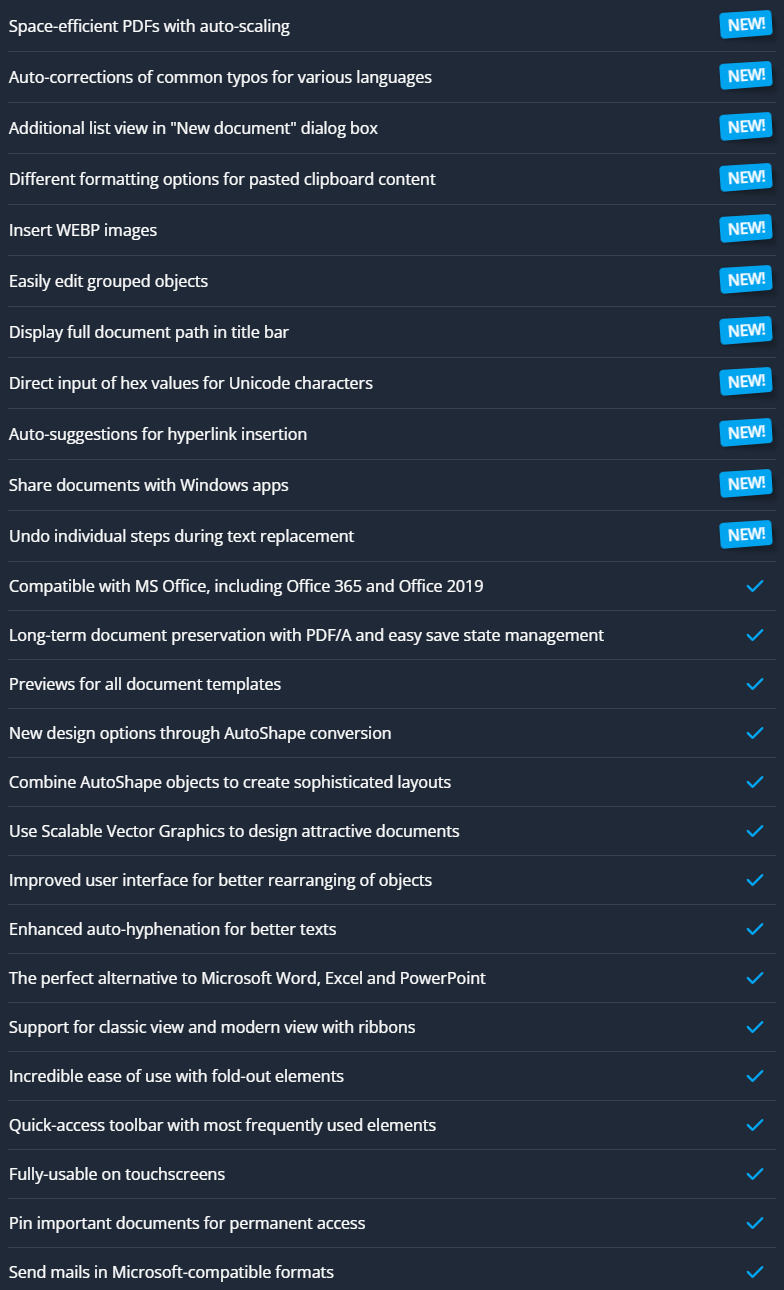 ตารางแจกแจงฟีเจอร์ โปรแกรม Office ราคาย่อมเยา Ashampoo Office 9