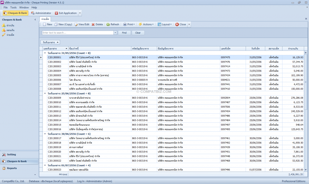 Cheque Printing & Management (โปรแกรมบริหารการสั่งจ่ายเช็ค และการพิมพ์เช็ค)