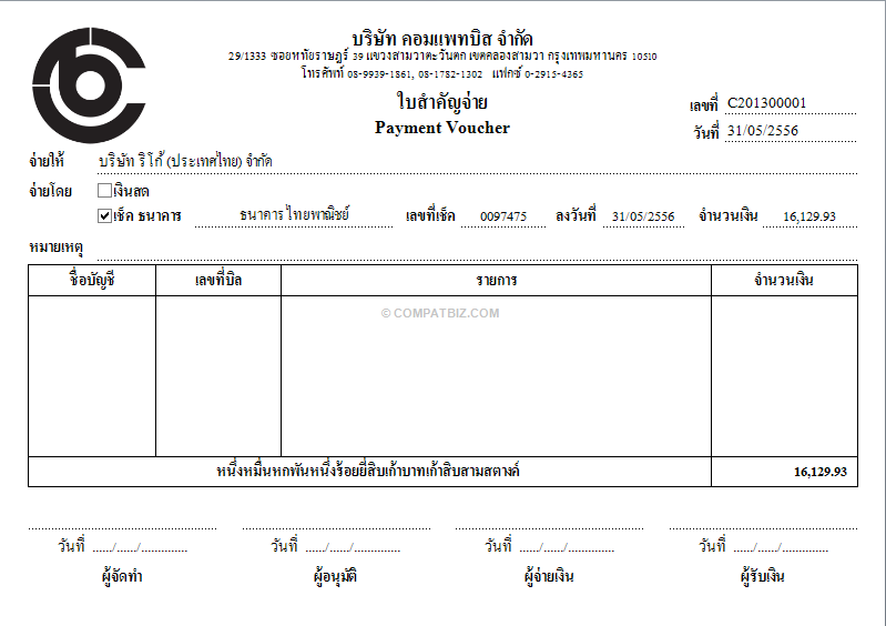 • พิมพ์ใบสำคัญจ่ายได้ (ออกแบบรูปแบบตัวอักษร, สี หรือการใส่โลโก้ / เครื่องหมายการค้าได้เอง)