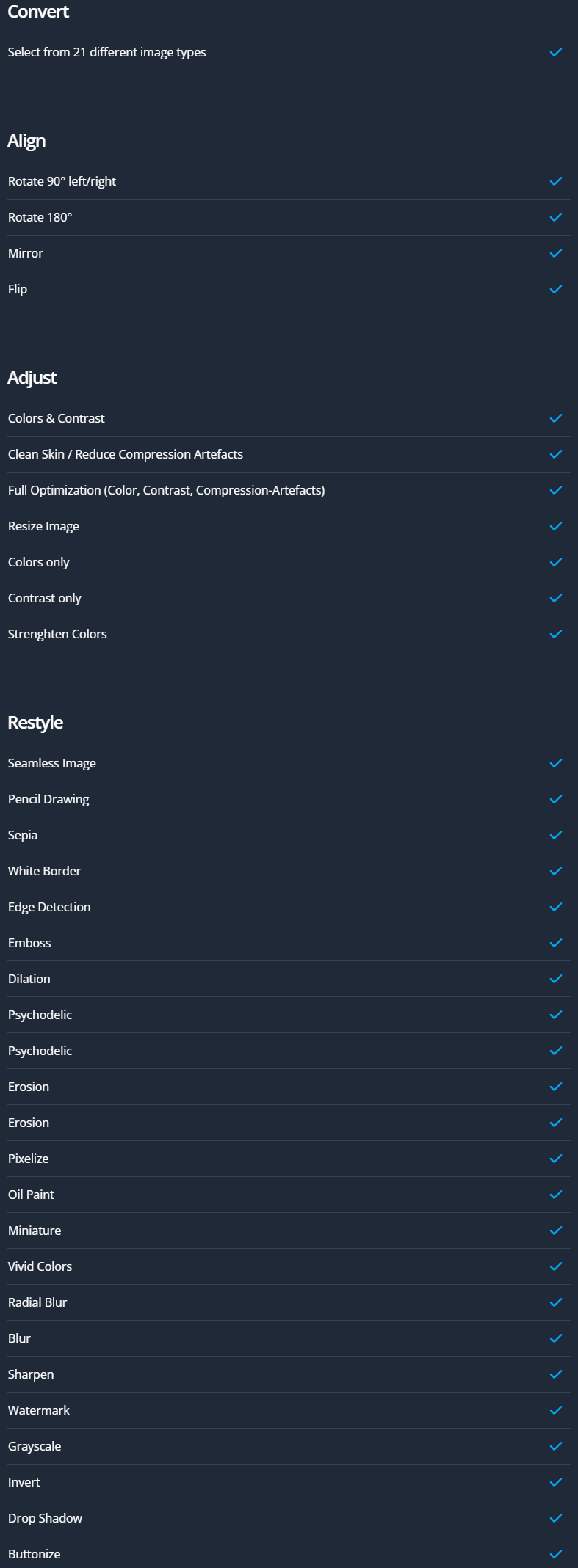 นอกจากใช้แปลงไฟล์รูปภาพ จากสกุลหนึ่งไปอีกสกุลหนึ่ง โปรแกรมแปลงไฟล์รูปภาพ Ashampoo Photo Converter 2 ยังสามารถ ตกแต่ง และ แก้ไขรูปภาพได้ด้วยความสามารถหลัก ๆ ดังนี้