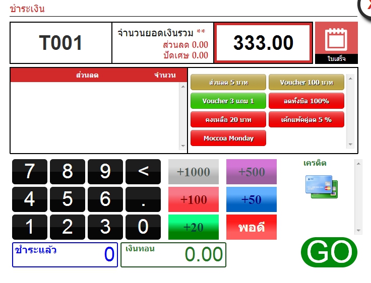 ปิดการขายได้สมบูรณ์แบบ และลดความผิดพลาดด้วย โปรแกรมจัดการร้านกาแฟ ใช้งานง่าย FR Coffee Mini หน้าจอมีการแสดงราคาอาหารรวมทุกรายการ ช่วยคำนวณเงินทอน ออกใบเสร็จรับเงิน รองรับการจ่ายด้วยเงินสด และบัตรเครดิต ใช้งานส่วนลดค่าอาหารตามโปรโมชันของทางร้านที่ตั้งค่าไว้ ช่วยส่งเสริมการขายได้หลายรูปแบบ