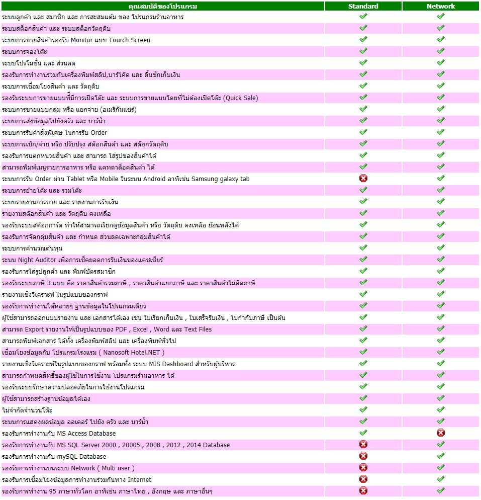 โปรแกรม Nanosoft Cafe.NET เป็น โปรแกรมร้านอาหาร (Restaurant Management Software) ที่ถูกพัฒนาโดยบริษัทซอฟต์แวร์สัญชาติไทย เพื่อธุรกิจร้านอาหารไทย ตั้งแต่ร้านอาหารขนาดเล็ก ไปจนถึงร้านอาหารขนาดใหญ่ทุกระดับ ไม่ว่าจะเป็น ร้านอาหาร ร้านกาแฟ ร้านเบเกอรี่ และ ฟาสต์ฟู้ด ธุรกิจใดต้องการยกระดับการบริหารจัดการร้านให้มีประสิทธิภาพ ตั้งแต่ระบบการขายหน้าร้าน ระบบการจองโต๊ะ ระบบเครื่องพิมพ์รายการอาหารสำหรับห้องครัว ไปจนถึงระบบการดูแลสต๊อกสินค้า โปรแกรมตัวนี้มีระบบให้ใช้งานครบถ้วน ในราคาที่เป็นเจ้าของได้ไม่ยาก โดยที่ส่วนประกอบหลักๆ ของโปรแกรมจะประกอบไปด้วย