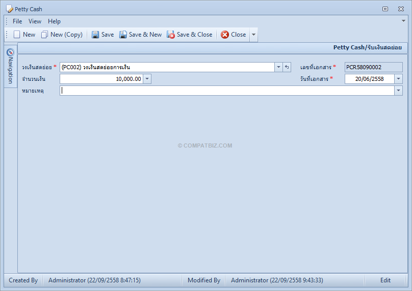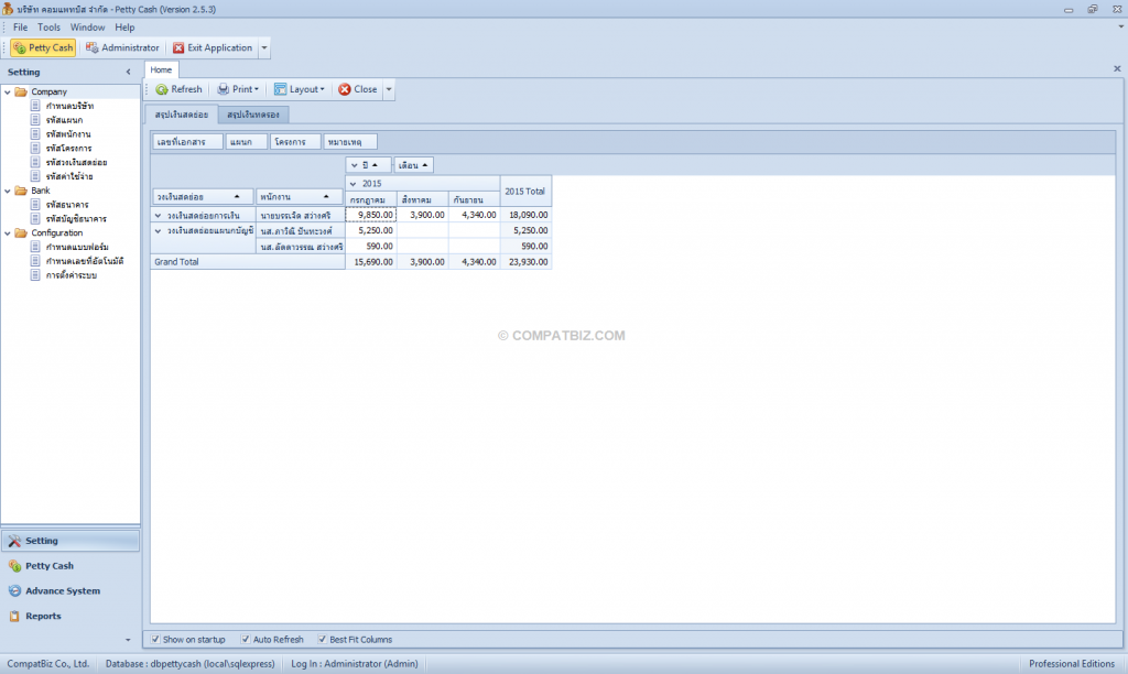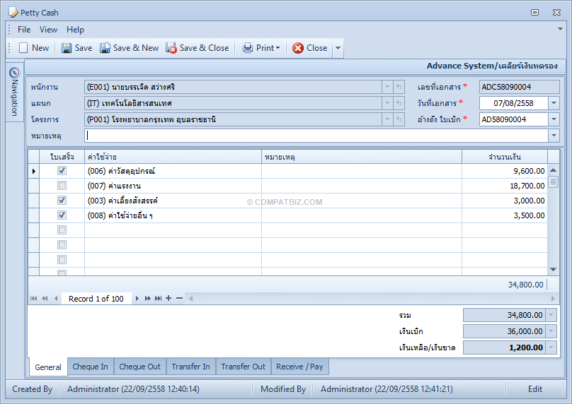 ตัวอย่างเอกสารที่จัดทำด้วยโปรแกรม Petty Cash and Advance System
