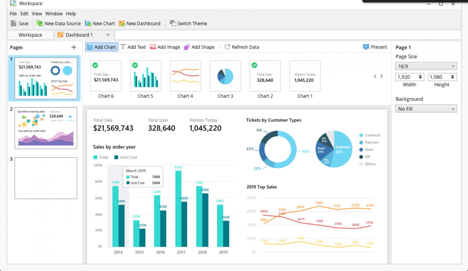 ด้วยฟีเจอร์การสร้างกราฟ และแผนภูมิรูปแบบต่าง ๆ ที่มีอยู่ใน โปรแกรมจัดการฐานข้อมูล รุ่นพรีเมียม Navicat Premium 17 - Perpetual License ทำให้สามารถนำเสนอแนวโน้มของชุดข้อมูลขนาดใหญ่ให้เห็นเป็นรูปธรรม ทำให้เข้าใจข้อมูลอย่างลึกซึ้ง และนำไปใช้ประกอบการตัดสินใจทางธุรกิจได้อย่างมีประสิทธิภาพ โดยในเครื่องมือ Smart Charts Tool ได้มีการเพิ่มรูปแบบแผนภูมิ และฟังก์ชันใหม่ ๆ อย่างต่อเนื่อง เชื่อมต่อกับข้อมูลได้หลายรูปแบบ อาทิ Excel, Access หรือ ODBC