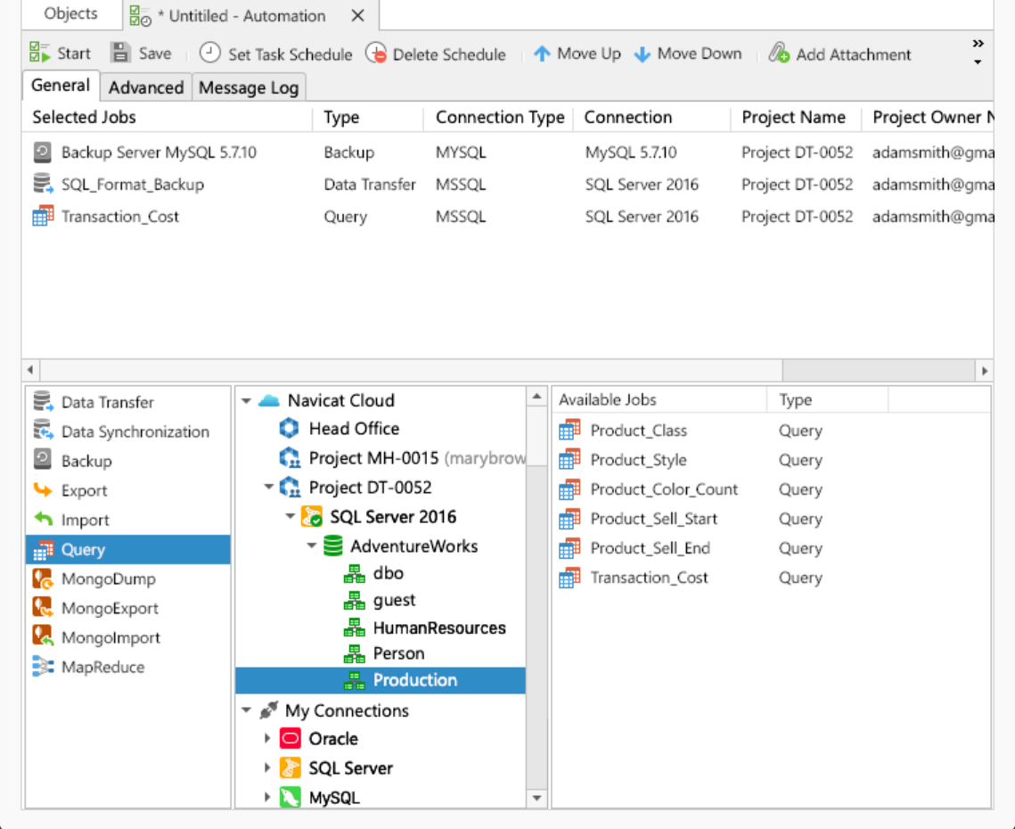 ช่วยให้งานของผู้ดูแลระบบฐานข้อมูลง่ายขึ้น ด้วยเครื่องมืออัตโนมัติที่มาพร้อมกับ โปรแกรมจัดการฐานข้อมูล รุ่นพรีเมียม Navicat Premium 17 - Perpetual License เครื่องมือสำหรับการ สำรองข้อมูล/เรียกคืนข้อมูล ในรูปแบบการใช้งานผ่านยูสเซอร์อินเตอร์เฟสแบบกราฟิก ที่ทำงานร่วมกับเทคโนโลยี MongoDump, Oracle Data Pump และ SQL Server Backup Utility มีตัวช่วยเพื่อทำการ เก็บสำรองข้อมูล ที่ช่วยลดความผิดพลาดในการทำงาน และสามารถตั้งให้มีการเก็บสำรองข้อมูล หรือการรันสคริปต์โดยอัตโนมัติตามตารางเวลาที่กำหนดไว้