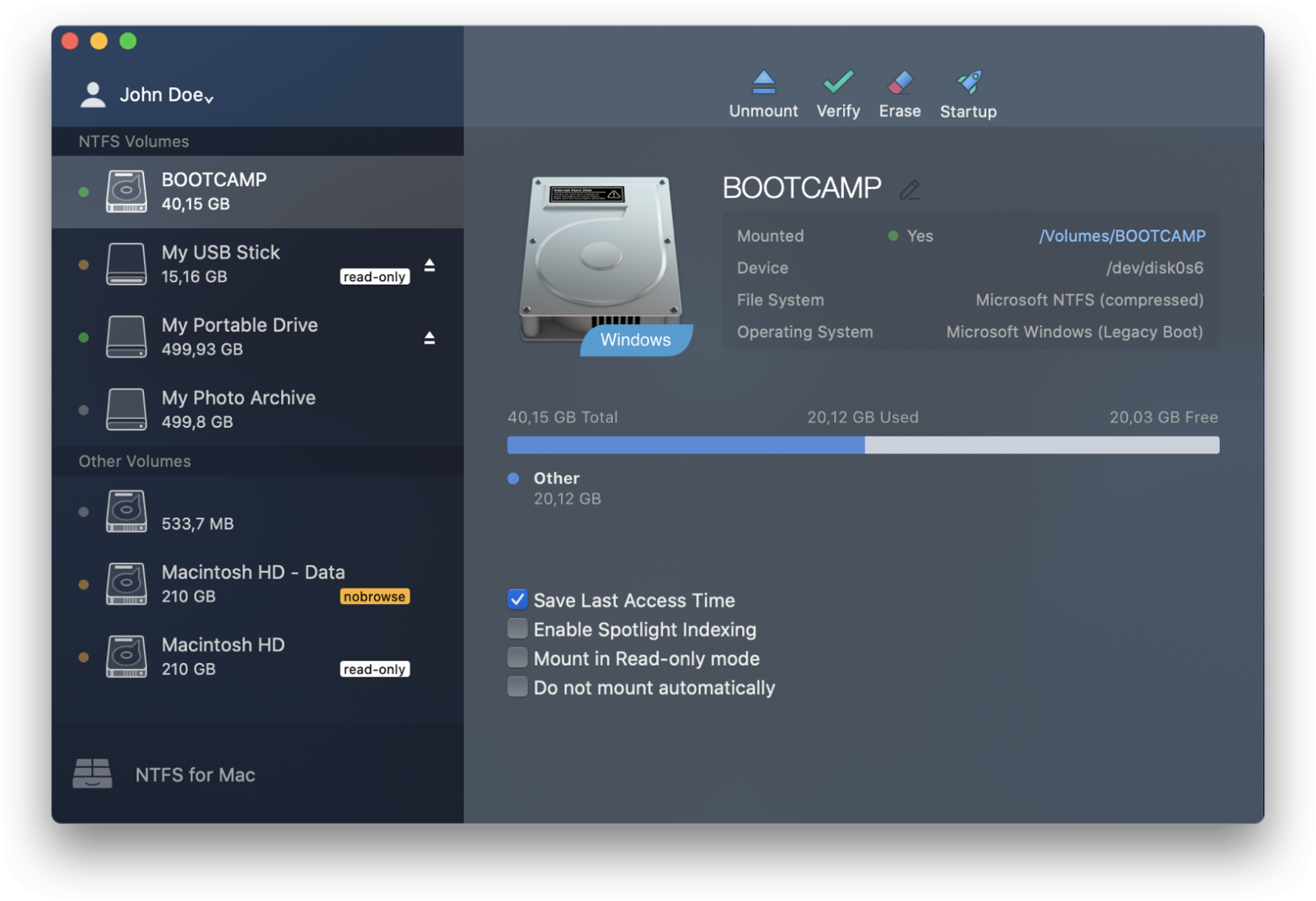 Automount : Microsoft NTFS for Mac by Paragon Software mounts supported volumes automatically at startup.