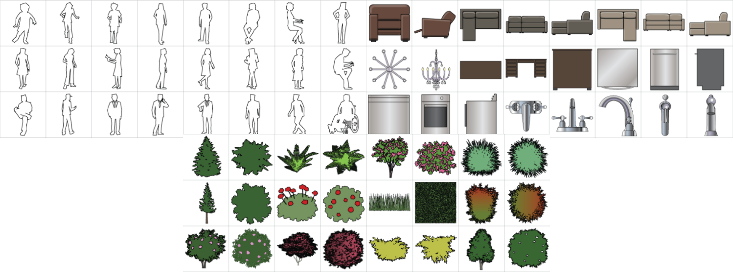โปรแกรมปลั๊กอิน Illustrator สำหรับงานเขียนแบบ ลิขสิทธิ์ซื้อขาด CADtools 14 - Perpetual License มาพร้อมสัญลักษณ์สำหรับงานออกแบบนับร้อย ในรูปแบบของภาพเวกเตอร์ที่สามารถนำไปใช้ใน โปรแกรม Adobe Illustrator ได้เลย โดยสัญลักษณ์แยกออกเป็นหมวดหมู่ต่าง ๆ อาทิ สถาปัตยกรรม ผู้คน และวิวทิวทัศน์ โดยที่ภาพสัญลักษณ์สามารถปรับขนาดสเกลให้ตรงกับเลเยอร์งานออกแบบโดยอัตโนมัติ