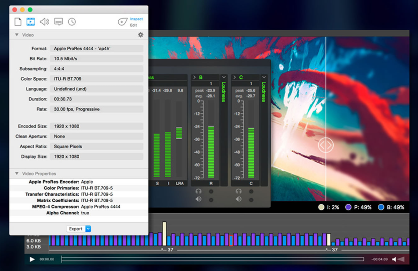 โปรแกรมตรวจสอบคุณภาพวิดีโอ เข้ารหัส ถอดรหัสไฟล์วิดีโอ รองรับการเล่นไฟล์วิดีโอสำหรับงานเว็บ รวมถึงไฟล์วิดีโอทุกรูปแบบ ปรับแต่งแก้ไขคุณสมบัติของไฟล์วิดีโอ แล้วส่งออก (Export) เป็นไฟล์ใหม่ที่สมบูรณ์แบบ เวอร์ชันสำหรับใช้งานบน macOS
