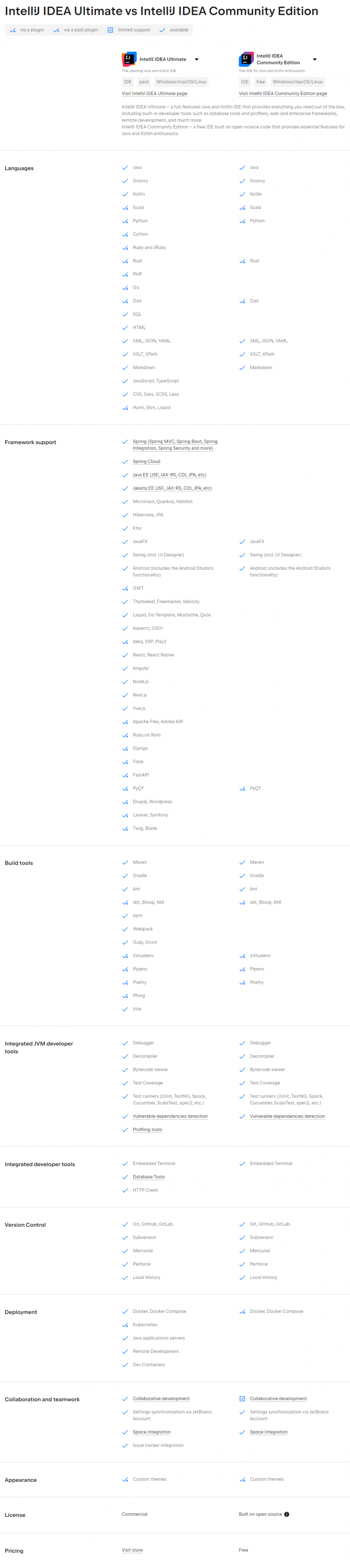 ตารางเปรียบเทียบความสามารถ โปรแกรมรวมเครื่องมือสำหรับผู้พัฒนาภาษาจาวา Jetbrains IntelliJ IDEA