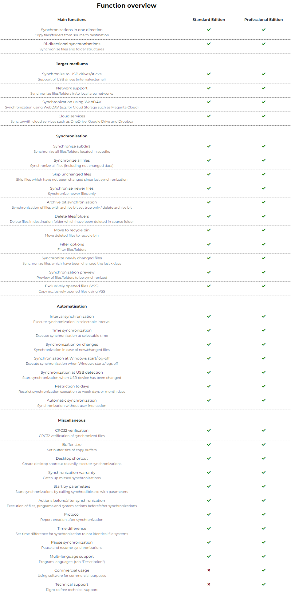 โปรแกรมเก็บสำรองไฟล์สำคัญ Synchredible Professional ไม่เพียงแค่รองรับการซิงค์ไฟล์ไปยังโฟลเดอร์ที่อยู่ในคอมพิวเตอร์เดียวกัน แต่ยังรองรับการซิงค์ไฟล์กับโฟลเดอร์ที่อยู่ในไดรฟ์บนระบบเครือข่าย รวมถึงการซิงค์ไฟล์โดยอัตโนมัติกับหน่วยเก็บข้อมูลภายนอกอย่างธัมบ์ไดรฟ์ ฮาร์ดดิสก์ภายนอก ที่มาเชื่อมต่อกับเครื่องคอมพิวเตอร์ผ่านพอร์ต USB และโปรแกรมตัวนี้จะทำการซิงค์ไฟล์กับหน่วยเก็บข้อมูลภายนอกได้อย่างแม่นยำ