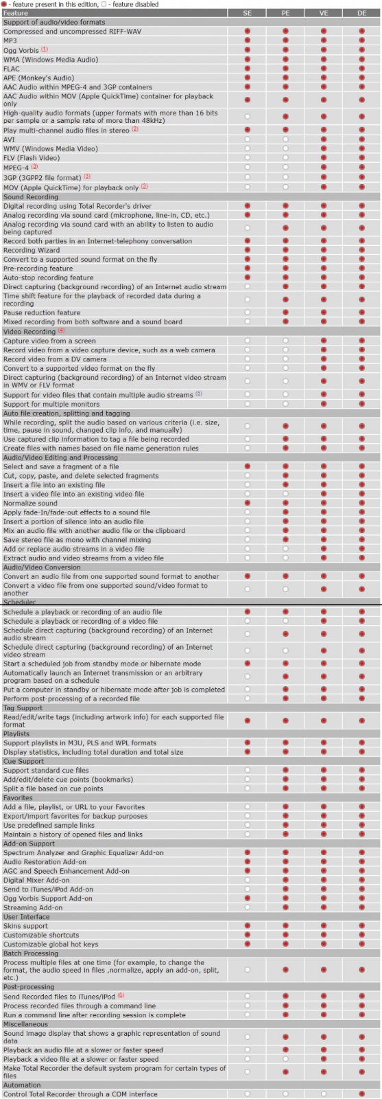 สำหรับ โปรแกรมอัดบันทึก Total Recorder นั้นมีวางจำหน่ายในท้องตลาดอยู่ทั้งหมด 4 เวอร์ชันหลักๆ ด้วยกันคือ