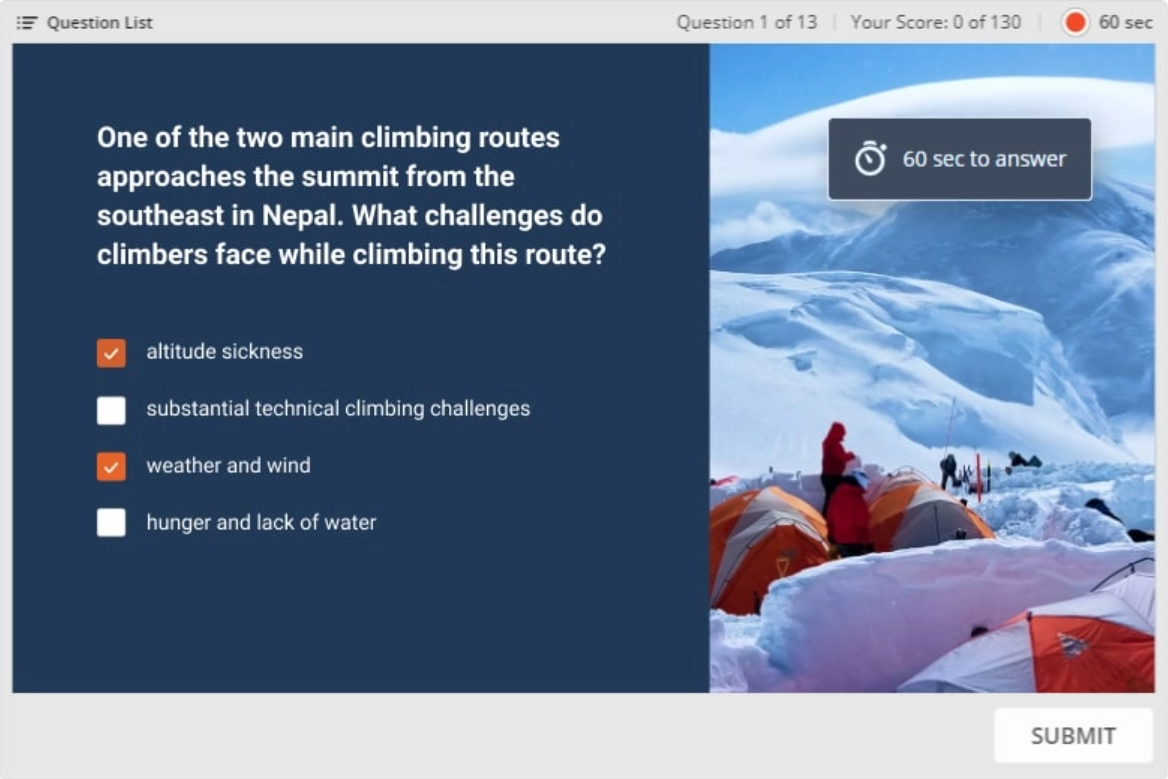 โปรแกรมทำแบบทดสอบ สร้างแบบทดสอบ iSpring QuizMaker ทำให้เราสามารถประเมินความรู้ของผู้ทำแบบทดสอบในกฎเกณฑ์ที่เราตั้งเอาไว้ อาทิ การกำหนดระดับคะแนนที่จะสอบผ่าน เก็บรวบรวมคะแนนจากข้อที่ทำถูก หักคะแนนข้อที่ทำผิด สามารถตั้งลำดับคะแนนให้กับคำตอบที่ถูกต้องเพียงบางส่วน กำหนดเวลาทำข้อสอบ สำหรับข้อสอบทั้งหมด หรือกำหนดเวลาแยกย่อยสำหรับแต่ละคำถามได้ตามต้องการ