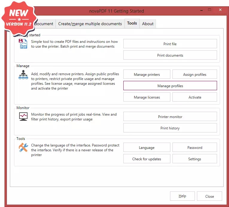 โปรแกรมสร้าง PDF จากไฟล์เอกสาร novaPDF มีความสามารถในการรวมไฟล์ PDF หลายๆ ไฟล์ให้เป็นไฟล์เดียว (Merge) โดยสามารถเลือกได้ว่า จะแทรกหน้าเอกสารเข้าไปในช่วงต้นของเอกสาร PDF ที่มีอยู่ (Inserting) หรือแทรกเอกสารเข้าไปช่วงท้ายเอกสาร PDF ที่มีอยู่ (Appending) และสามารถรวมเอกสารหลายๆ ไฟล์ จากแหล่งต่างๆ ในการสั่งงานเพียงครั้งเดียว ทำให้รวมเอกสารที่เกี่ยวข้องกัน ให้กลายเป็นไฟล์เดียวกันได้อย่างรวดเร็ว
