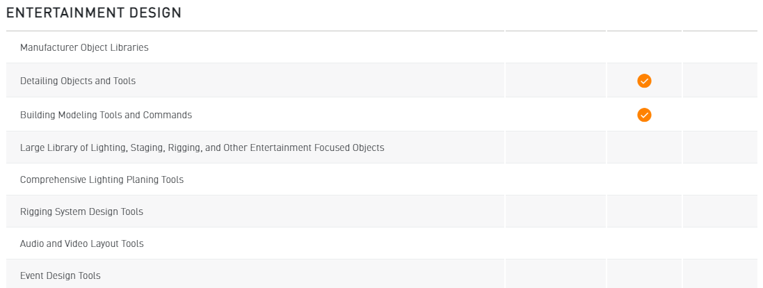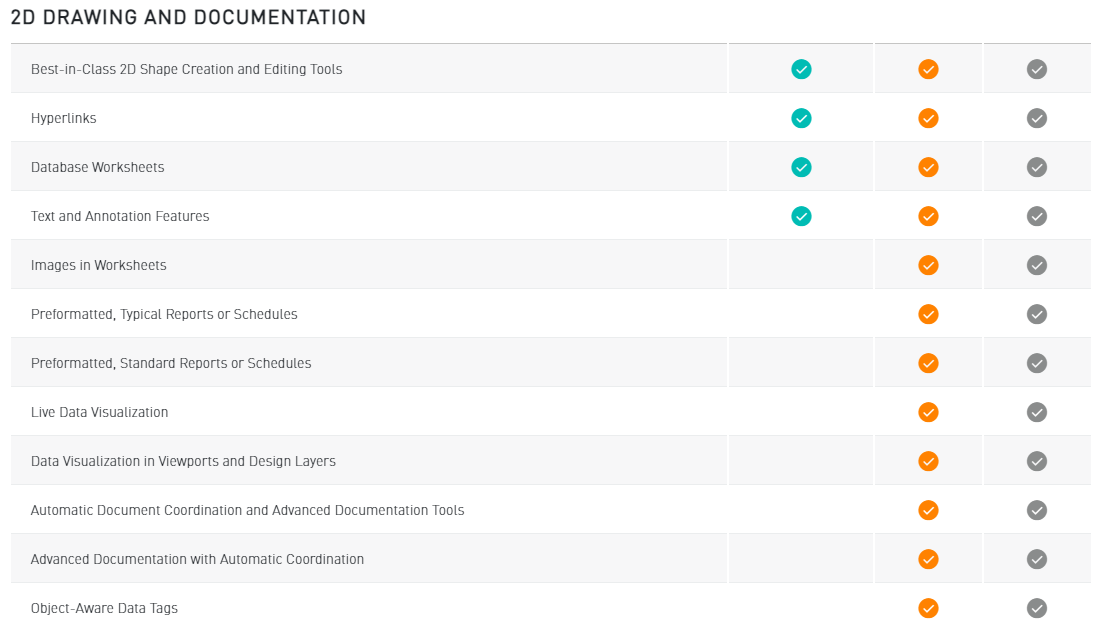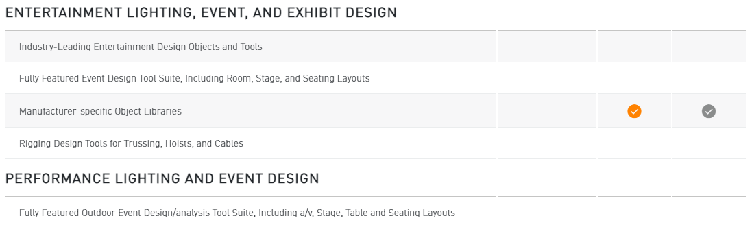 ตารางเปรียบเทียบ โปรแกรมออกแบบ เขียนแบบ Vectorworks ในแต่ละเวอร์ชัน