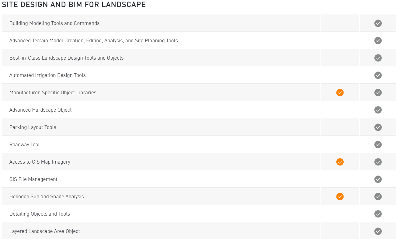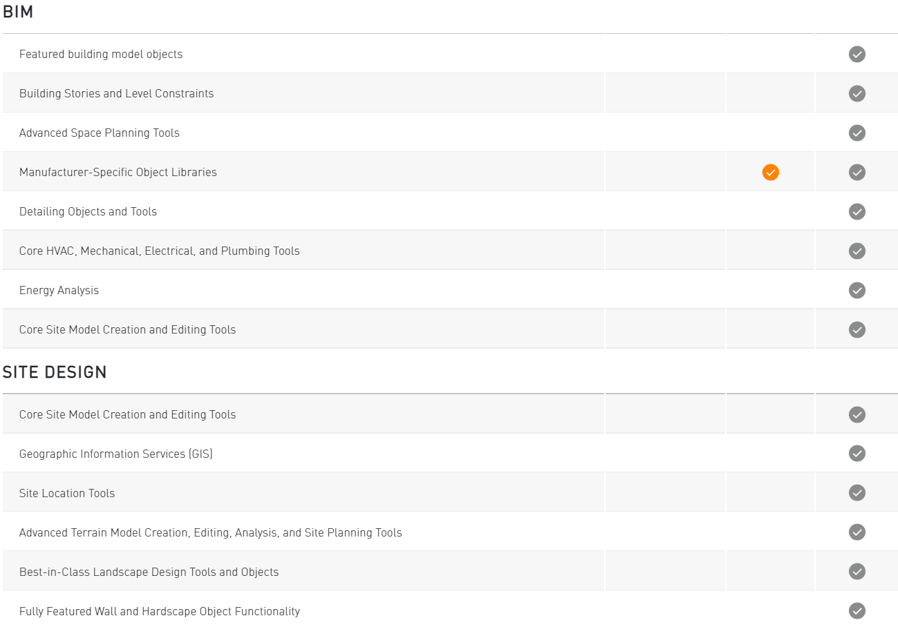 ตารางเปรียบเทียบ โปรแกรมออกแบบ เขียนแบบ Vectorworks ในแต่ละเวอร์ชัน