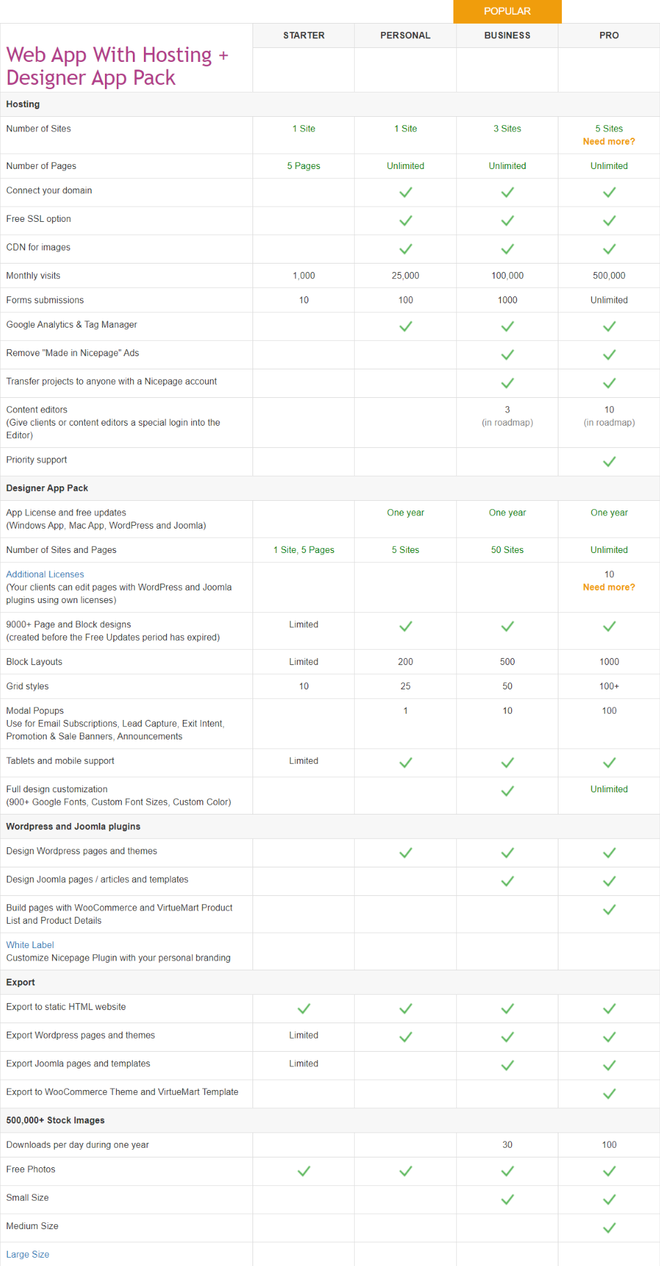 ตารางเปรียบเทียบ โปรแกรมทำเว็บ Nicepage ในแต่ละเวอร์ชัน