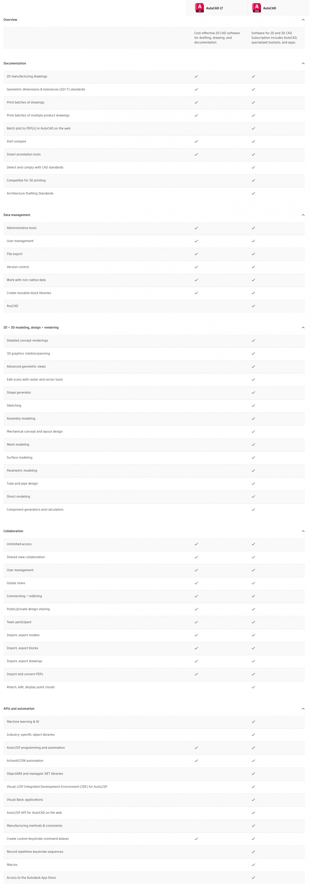 ตารางเปรียบเทียบความสามารถระหว่าง โปรแกรมออกแบบ 3 มิติ AutoCAD และ โปรแกรมออกแบบ 2 มิติ AutoCAD LT