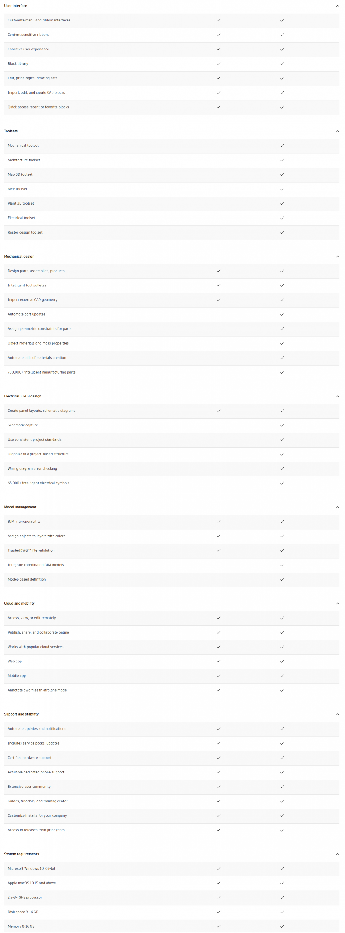 โปรแกรมออกแบบวิศวกรรม 2 มิติ ได้อย่างมืออาชีพ มาพร้อมเครื่องมือมากมายที่ช่วยให้งานออกแบบง่ายขึ้น รวมถึงการทำงานผ่านเว็บแอปพลิเคชัน (AutoCAD on The Web) และแอปพลิเคชันบนอุปกรณ์พกพา (AutoCAD on Mobile) ลิขสิทธิ์แบบรายปี