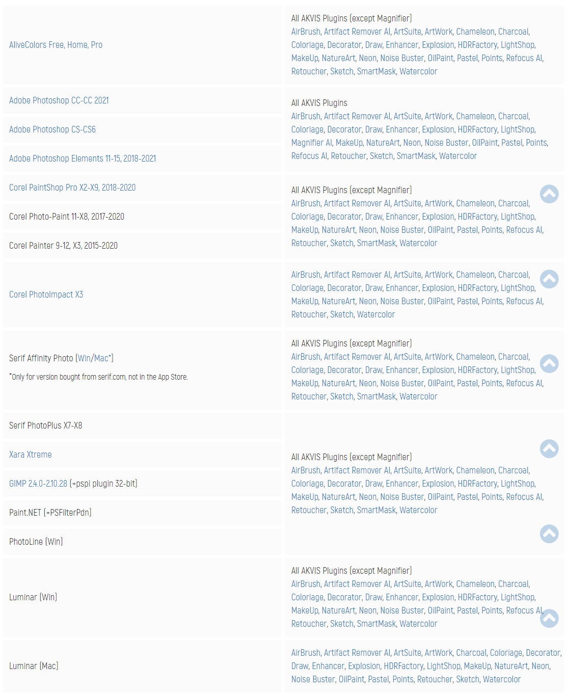 ชุดโปรแกรมปลั๊กอิน โปรแกรมแต่งรูป AKVIS Artistic Bundle นั้นได้รวบรวมโปรแกรมจำนวน 8 โปรแกรม ที่จะเพิ่มขีดความสามารถในการจัดการรูปภาพจำนวนมาก และแต่งรูปได้อย่างมืออาชีพ ดังนี้