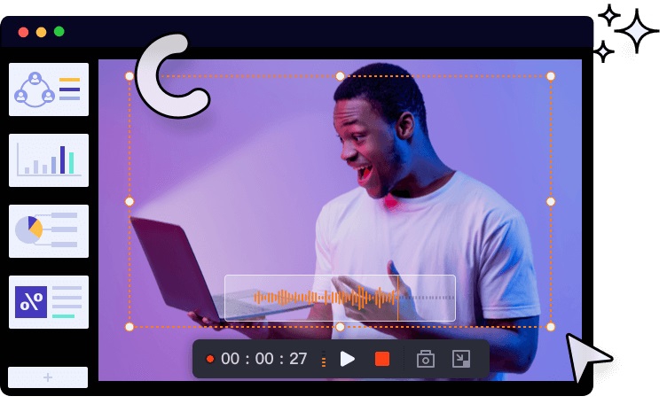 • จับภาพใบหน้าของคุณผ่านกล้องเว็บแคมขณะอัดวิดีโอหน้าจอ เพื่อมีปฏิสัมพันธ์กับผู้ชมได้