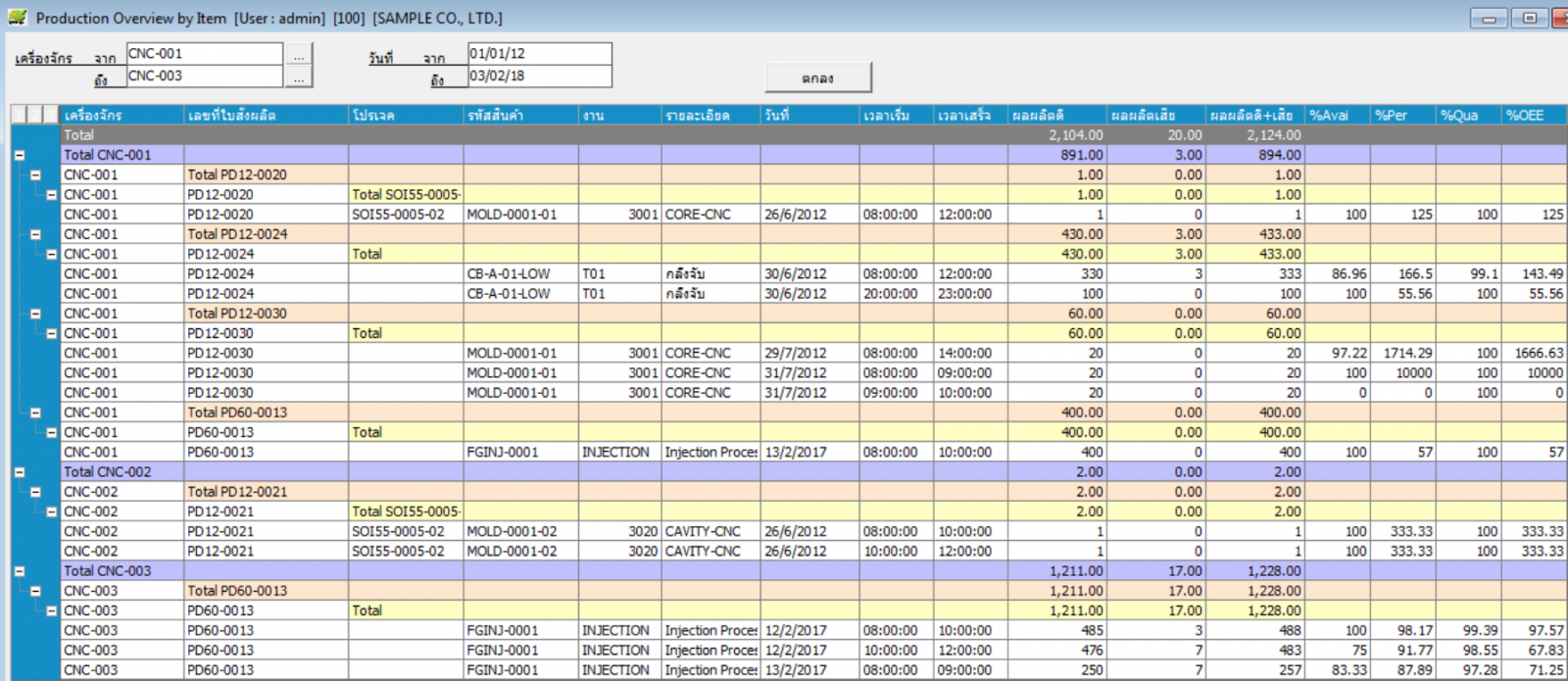 ดีเสียที่ได้นั้นเป็นเท่าไร โดยข้อมูลจะวิ่งแบบเรียลไทม์ถ้าเราทำการเซ็ตให้คีย์ข้อมูลที่หน้าเครื่องจักร