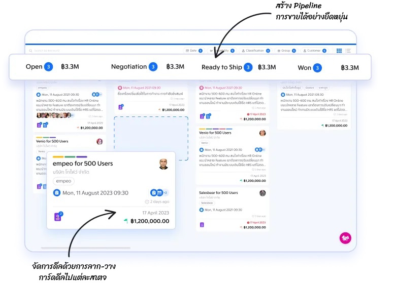 โปรแกรมระบบริหารงานขายอย่างมืออาชีพ Venio Sales CRM เป็นเครื่องมืออ้นทรงประสิทธิภาพในการปรับปรุงกระบวนการขาย เพิ่มโอกาสปิดยอดผ่านการบริหารไปป์ไลน์แบบองค์กรระดับโลก ดูแลดีลลูกค้าผ่าน Deal Stage เห็นทุกความเคลื่อนไหวของดีล ไม่พลาดทุกโอกาสการขาย