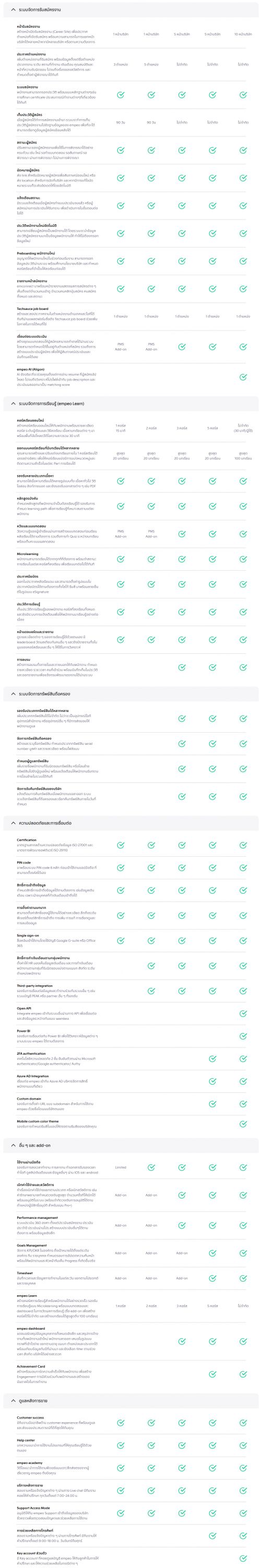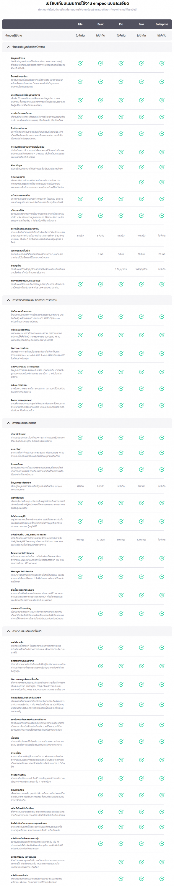 ตารางเปรียบเทียบความสามารถ โปรแกรมริหารงานบุคคล empeo แต่ละเวอร์ชัน