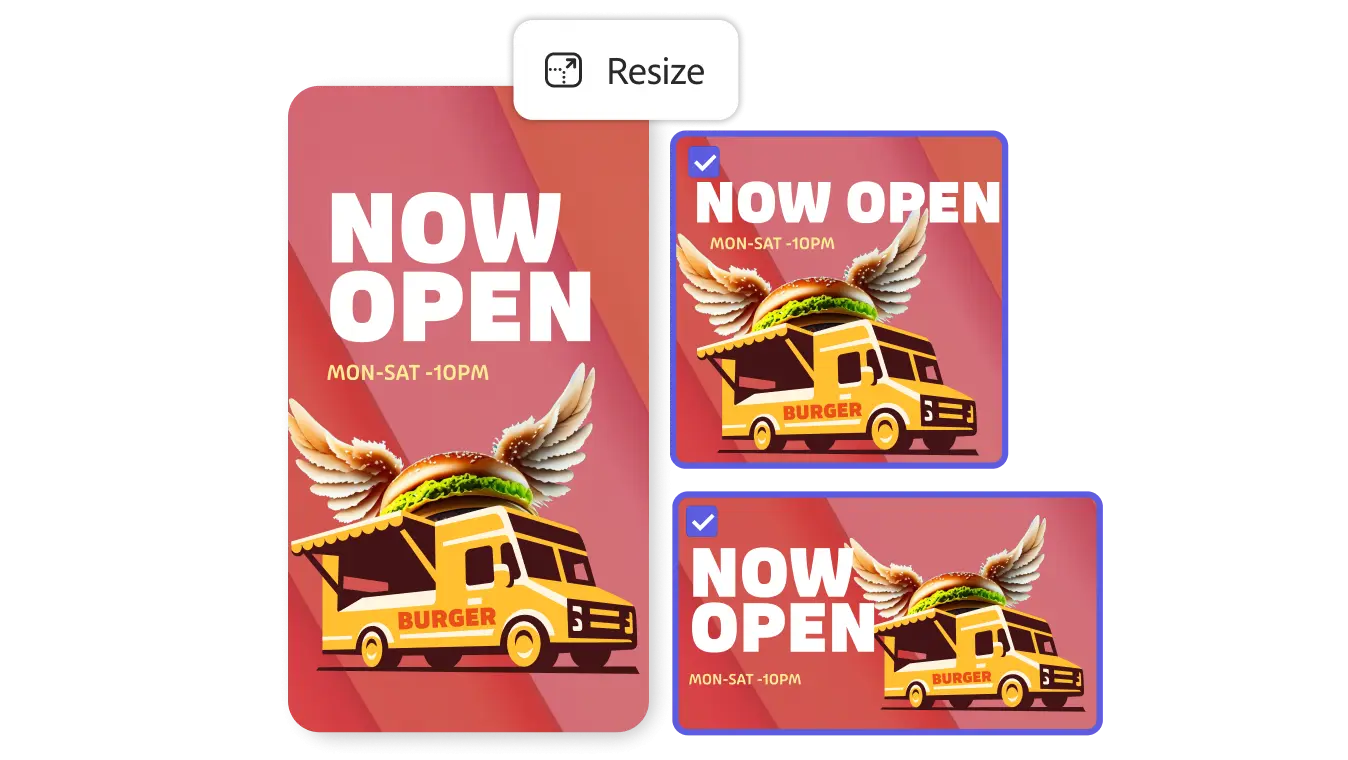 โปรแกรมสร้างสื่อกราฟิกทุกรูปแบบได้อย่างง่ายดาย สำหรับหน่วยงานราชการ Adobe Express for Teams Government ยังมีตัวเลือกในการปรับแต่งเทมเพลตให้เหมาะกับสไตล์ของคุณ สามารถเปลี่ยนสี เปลี่ยนฟอนต์ ปรับขนาด หรือแม้แต่เพิ่มองค์ประกอบอื่น ๆ เช่น ไอคอน รูปภาพ และเอฟเฟกต์ต่าง ๆ ได้อย่างง่ายดาย เทมเพลตบางแบบยังรองรับความเคลื่อนไหว เหมาะสำหรับสร้างวิดีโอหรือภาพเคลื่อนไหวที่น่าสนใจ