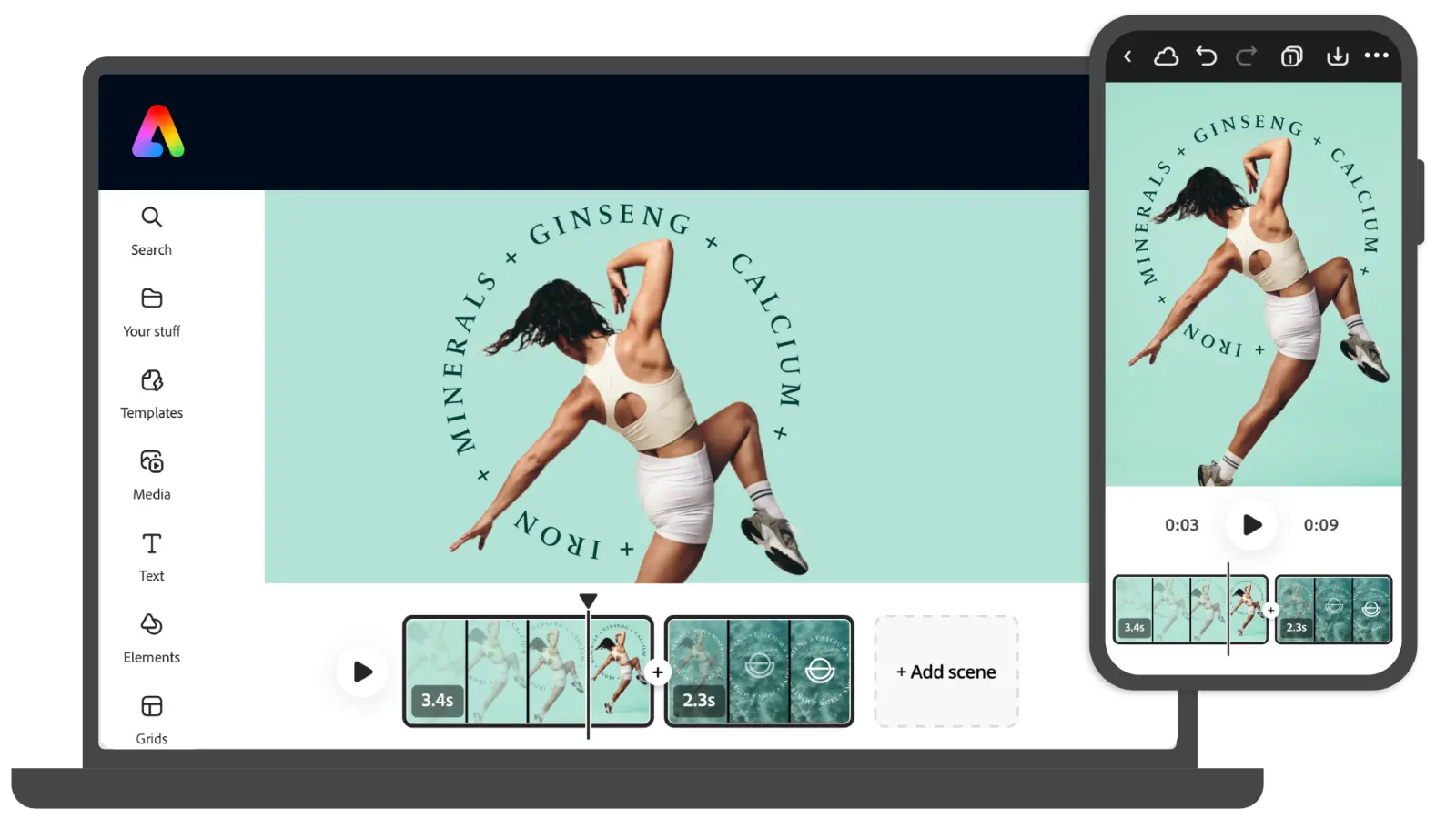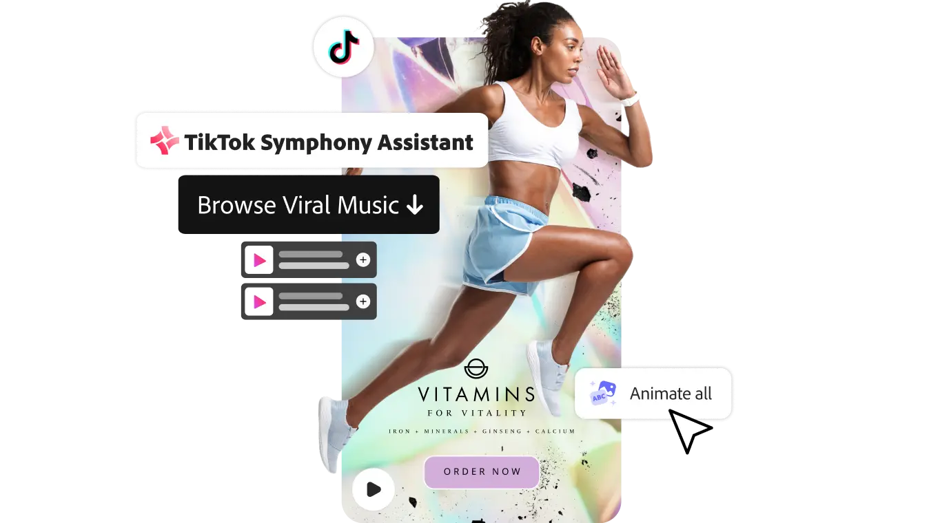 โปรแกรมสร้างสื่อกราฟิกทุกรูปแบบได้อย่างง่ายดาย สำหรับหน่วยงานราชการ Adobe Express for Teams Government ยังมีเทมเพลตวิดีโอสำเร็จรูปที่ช่วยให้การสร้างวิดีโอเป็นเรื่องง่าย คุณสามารถเลือกเทมเพลตที่เหมาะสมกับเนื้อหาของคุณ แล้วแก้ไขข้อความ สี หรือภาพเคลื่อนไหวได้ตามต้องการ อีกทั้งยังสามารถปรับแต่งความยาววิดีโอ ตัดต่อฉาก เพิ่มเสียงบรรยาย หรือใส่เพลงประกอบจากไลบรารี่เสียงที่มีให้เลือกมากมาย
