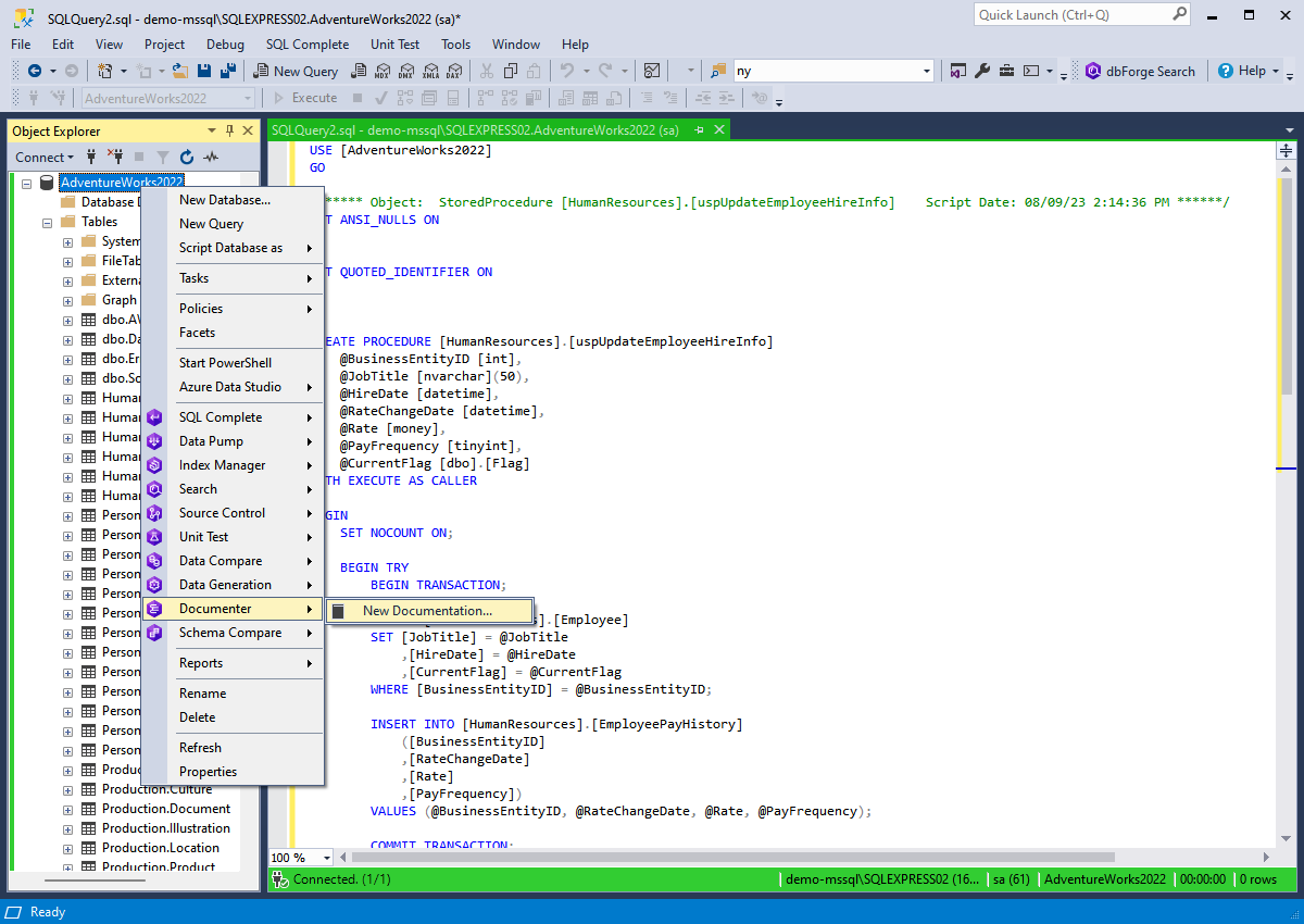 ตัวอย่าง VDO สาธิตการใช้งาน โปรแกรมสร้างเอกสารของโครงสร้างฐานข้อมูล Devart dbForge Documenter for SQL Server Standard